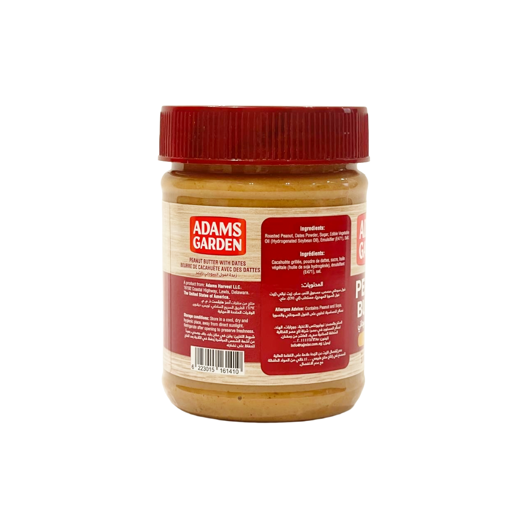 Peanut butter blended with natural dates flavor and roasted peanuts